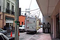 En una de nuestras estrechas calles del Centro Hist�rico de la ciudad de Santiago de Quer�taro, encontramos una Unidad de Monitoreo Ambiental del gobierno del estado, entorpeciendo la circulaci�n, provocando un congestionamiento en el flujo vehicular y en consecuencia mayor cantidad de emisi�n contaminante generada por los automotores que intentan librar esta calle.